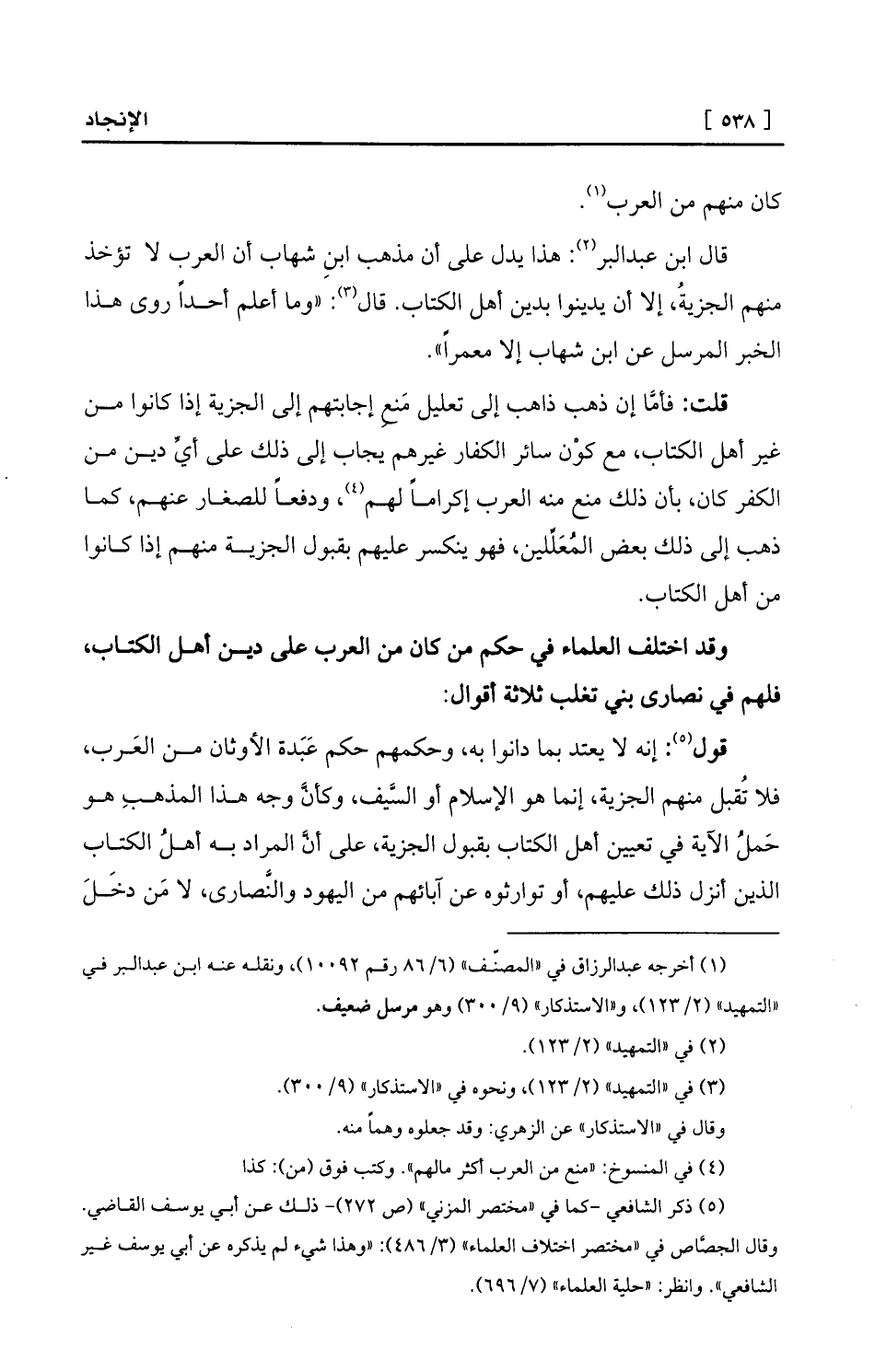 قال ابن عبد البر (¬2) : هذا يدل على أن مذهب ابنِ شهاب أن العرب لا تؤخذ منهم الجزيةُ، إلا أن يدينوا بدين أهل الكتاب. قال (¬3) : «وما أعلم أحداً روى هذا الخبر المرسل عن ابن شهاب إلا معمراً» .