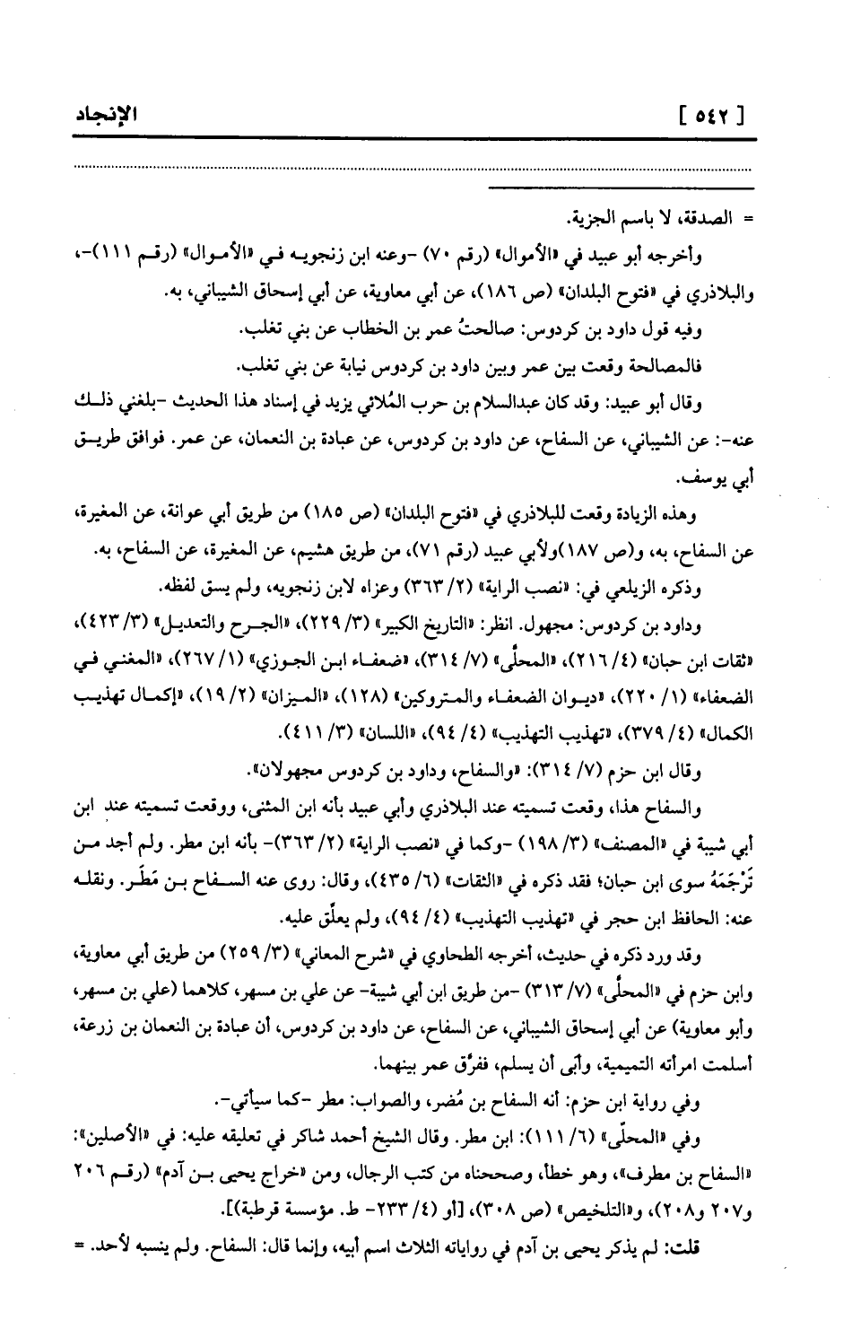 وفي «المحلّى» (6/111) : ابن مطر. وقال الشيخ أحمد شاكر في تعليقه عليه: في «الأصلين» : «السفاح بن مطرف» ، وهو خطأ، وصححناه من كتب الرجال، ومن «خراج يحيى بن آدم» (رقم 206 و207 و208) ، و «التلخيص» (ص 308) ، [أو (4/233- ط. مؤسسة قرطبة) ] .