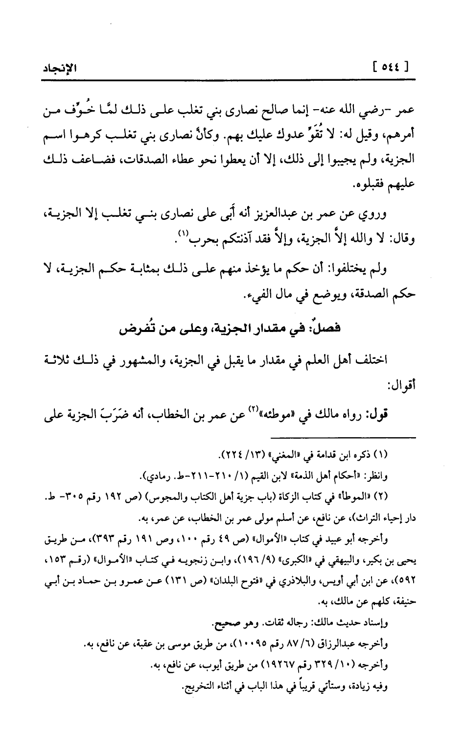(¬2) «الموطأ» في كتاب الزكاة (باب جزية أهل الكتاب والمجوس) (ص 192 رقم 305- ط. دار إحياء التراث) ، عن نافع، عن أسلم مولى عمر بن الخطاب، عن عمر، به.