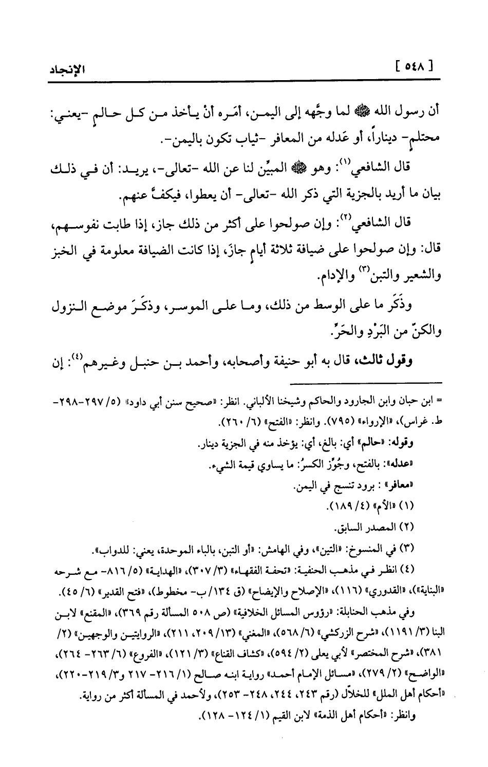 (¬4) انظر في مذهب الحنفية: «تحفة الفقهاء» (3/307) ، «الهداية» (5/816- مع شرحه «البناية» ) ، «القدوري» (116) ، «الإصلاح والإيضاح» (ق 134/ب- مخطوط) ، «فتح القدير» (6/45) .