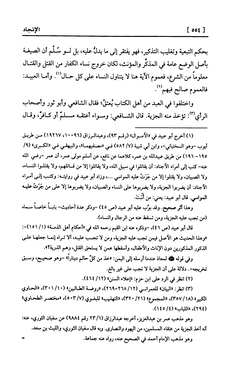 وهذا أثر صحيح. وقد بوَّب عليه أبو عبيد (ص 45) -وذكر عدة أحاديث- باباً خاصاً سماه (من تجب عليه الجزية، ومن تسقط عنه من الرجال والنساء) .