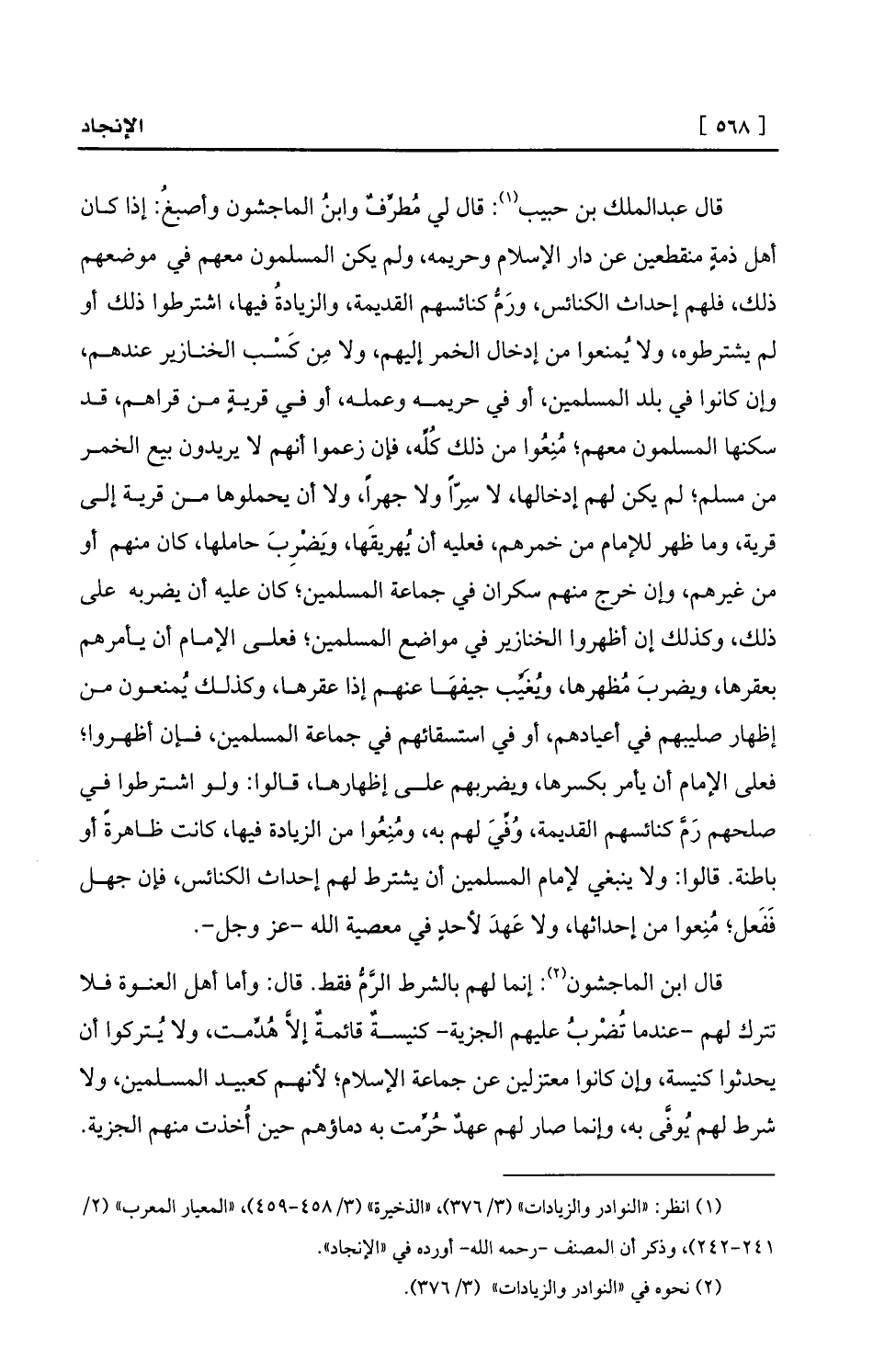 (¬1) انظر: «النوادر والزيادات» (3/376) ، «الذخيرة» (3/458-459) ، «المعيار المعرب» (2/ 241-242) ، وذكر أن المصنف -رحمه الله- أورده في «الإنجاد» .