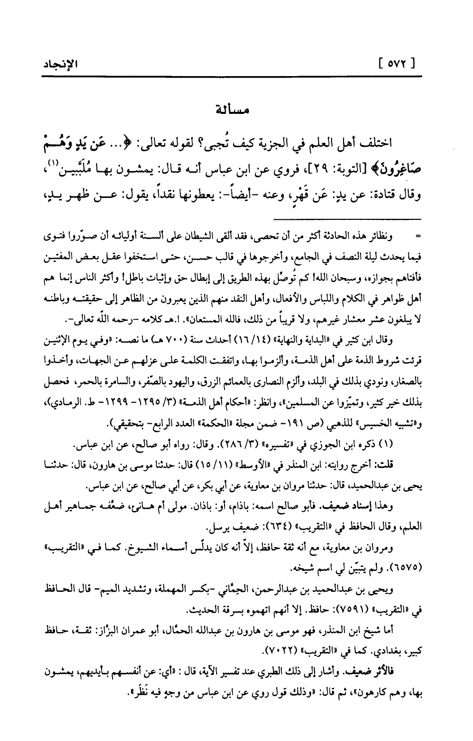اختلف أهل العلم في الجزية كيف تُجبى؟ لقوله تعالى: { ... عَن يَدٍ وَهُمْ صَاغِرُونَ} [التوبة: 29] ، فروي عن ابن عباس أنه قال: يمشون بها مُلَبَّبين (¬1) ، وقال قتادة: عن يدٍ: عَن قَهْرٍ، وعنه
