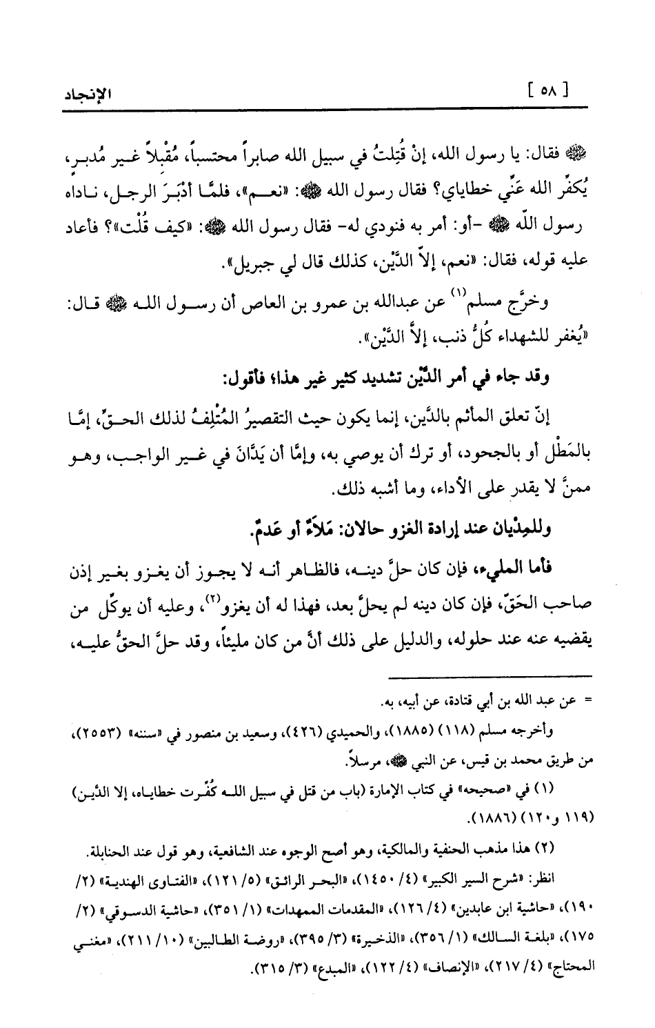 (¬1) في «صحيحه» في كتاب الإمارة (باب من قتل في سبيل الله كُفِّرت خطاياه، إلا الدَّين) (119 و120) (1886) .