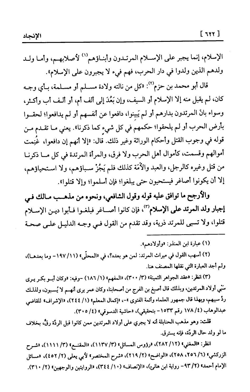(¬3) انظر: «عقد الجواهر الثمينة» (3/300) ، «المفهم» (1/186) -وفيه: «وكان أبو بكر يرى سَبْي أولاد المرتدين، وبذلك قال أصبغ بن الفرج من أصحابنا، وكان عمر يرى أنهم لا يُسبون، ولذلك ردَّ سبيهم، وبهذا قال جمهور العلماء وأئمة الفتوى» -، «إكمال المعلم» (1/244) ، «الإشراف» للقاضي عبد الوهاب (4/178 رقم 1533- بتحقيقي) ، «حاشية الدسوقي» (4/305) .