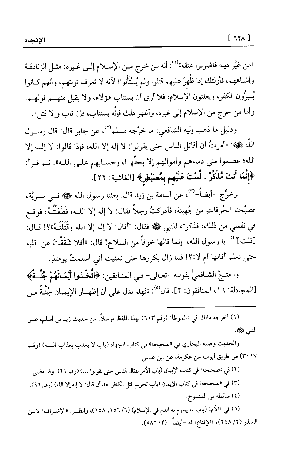 (¬5) في «الأم» (باب ما يحرم به الدم في الإسلام) (6/156، 158) ، وانظر: «الإشراف» لابن المنذر (2/248) ، «الإقناع» له -أيضاً- (2/586) .