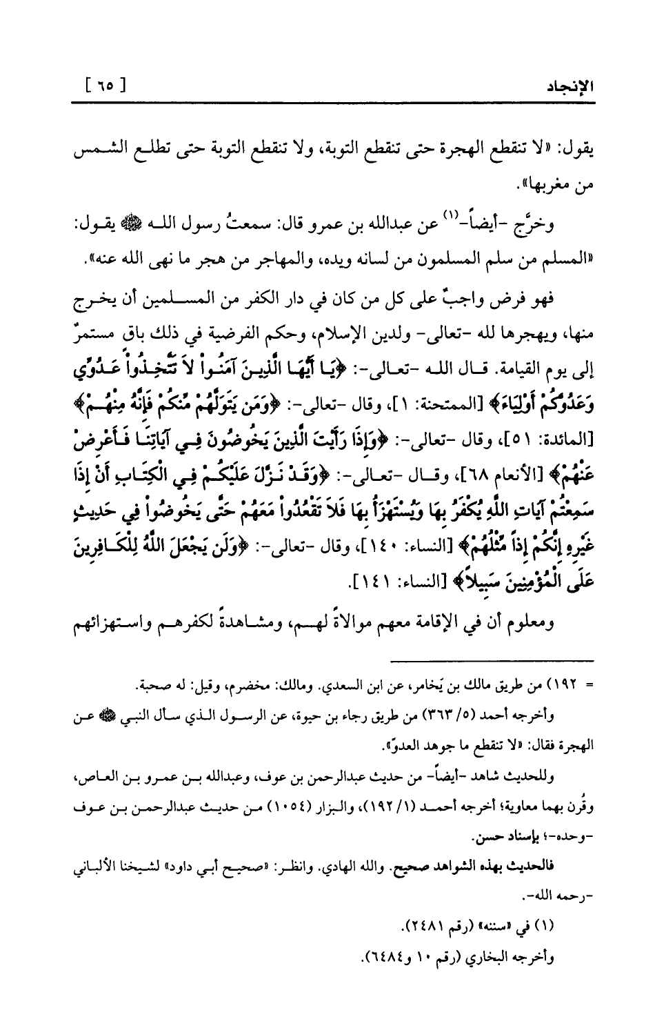 وأخرجه أحمد (5/363) من طريق رجاء بن حيوة، عن الرسول الذي سأل النبي - صلى الله عليه وسلم - عن الهجرة فقال: «لا تنقطع ما جوهد العدوّ» .