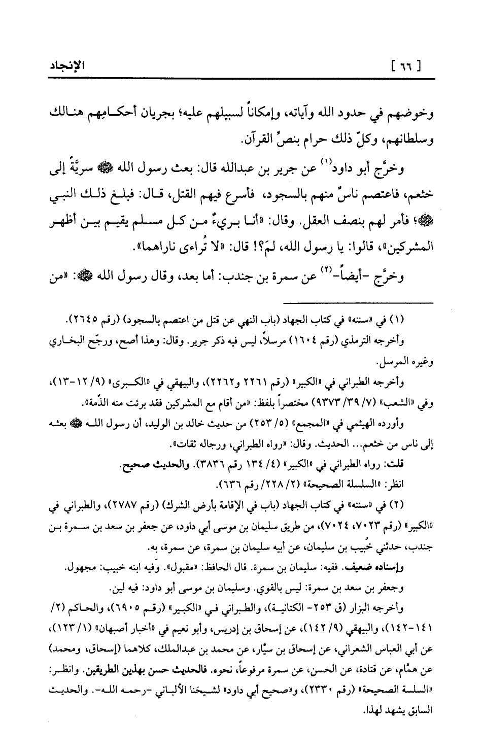 (¬2) في «سننه» في كتاب الجهاد (باب في الإقامة بأرض الشرك) (رقم 2787) ، والطبراني في «الكبير» (رقم 7023، 7024) ، من طريق سليمان بن موسى أبي داود، عن جعفر بن سعد بن سمرة بن جندب، حدثني خُبيب بن سليمان، عن أبيه سليمان بن سمرة، عن سمرة، به.