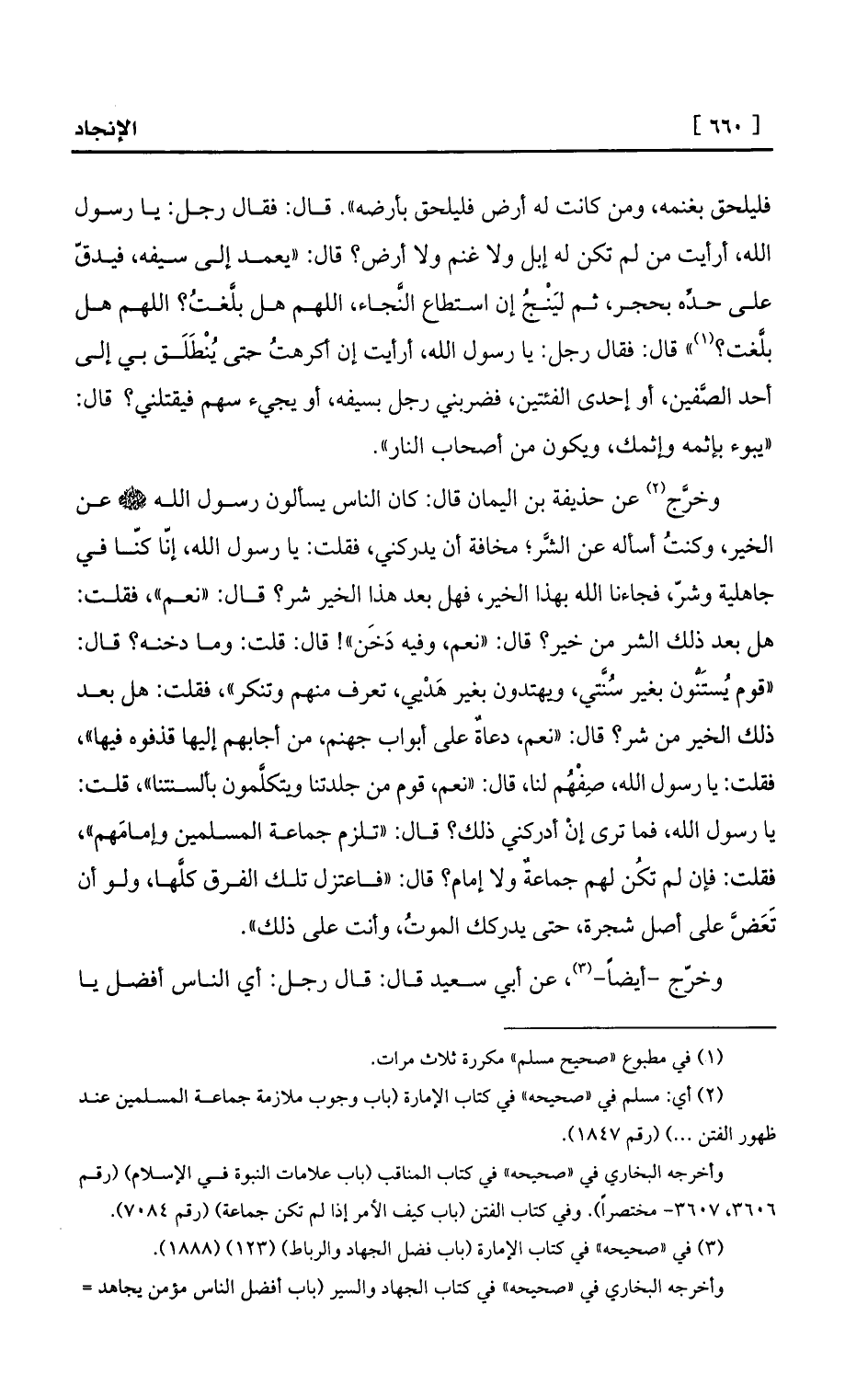 (¬2) أي: مسلم في «صحيحه» في كتاب الإمارة (باب وجوب ملازمة جماعة المسلمين عند ظهور الفتن ... ) (رقم 1847) .