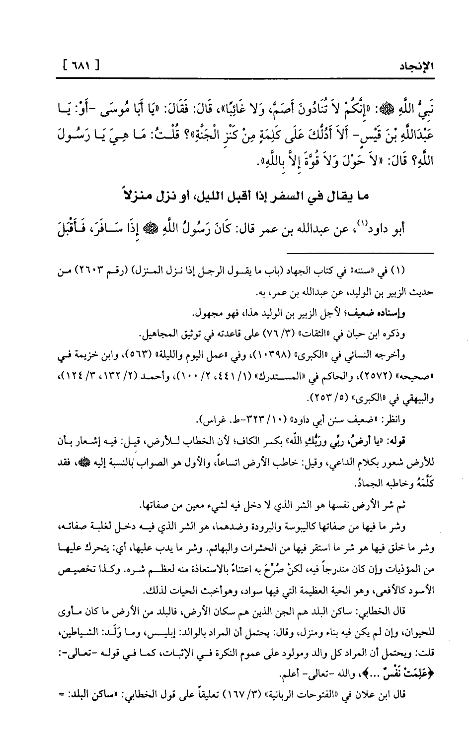 (¬1) في «سننه» في كتاب الجهاد (باب ما يقول الرجل إذا نزل المنزل) (رقم 2603) من حديث الزبير بن الوليد، عن عبد الله بن عمر، به.