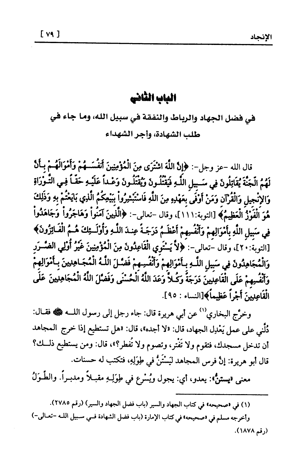 (¬1) في «صحيحه» في كتاب الجهاد والسير (باب فضل الجهاد والسير) (رقم 2785) .