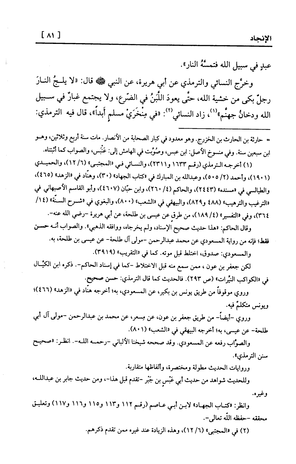 وانظر: «كتاب الجهاد» لابن أبي عاصم (رقم 112 و113 و115 و116 و117) وتعليق محققه -حفظه الله تعالى-.