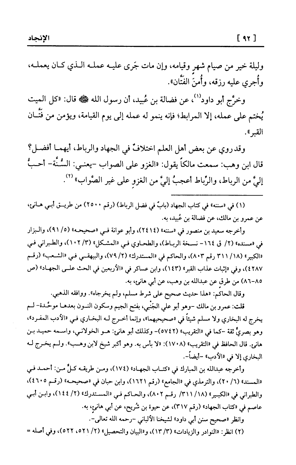 (¬1) في «سننه» في كتاب الجهاد (بابٌ في فضل الرباط) (رقم 2500) من طريق أبي هانئ، عن عمرو بن مالك، عن فضالة بن عُبيد، به.