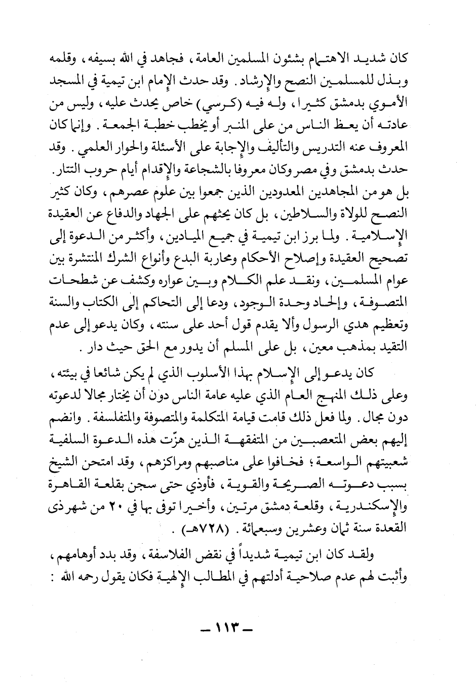 ولقد كان ابن تيمية شديداً في نقض الفلاسفة، وقد بدد أوهامهم وأثبت لهم عدم صلاحية أدلتهم في المطالب الإلهية، فكان يقول رحمه الله: