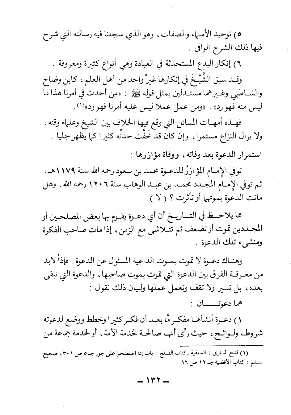 فهذه أمهات المسائل التي وقع فيها الخلاف بين الشيخ وعلماء وقته. ولا يزال النزاع مستمراً، وإن كان قد خَفّت حدتُه كثيراً كما يظهر جلياً.