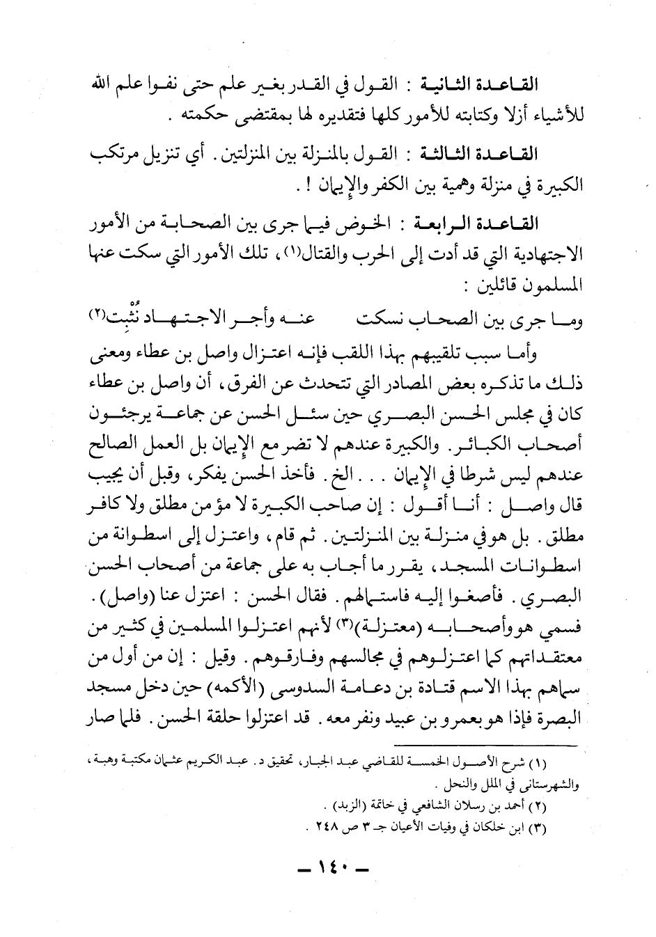 1 شرح الأصول الخمسة للقاضي عبد الجبار تحقيق د. عبد الكريم عثمان مكتبة وهبة، والشهرستاني في الملل والنحل.