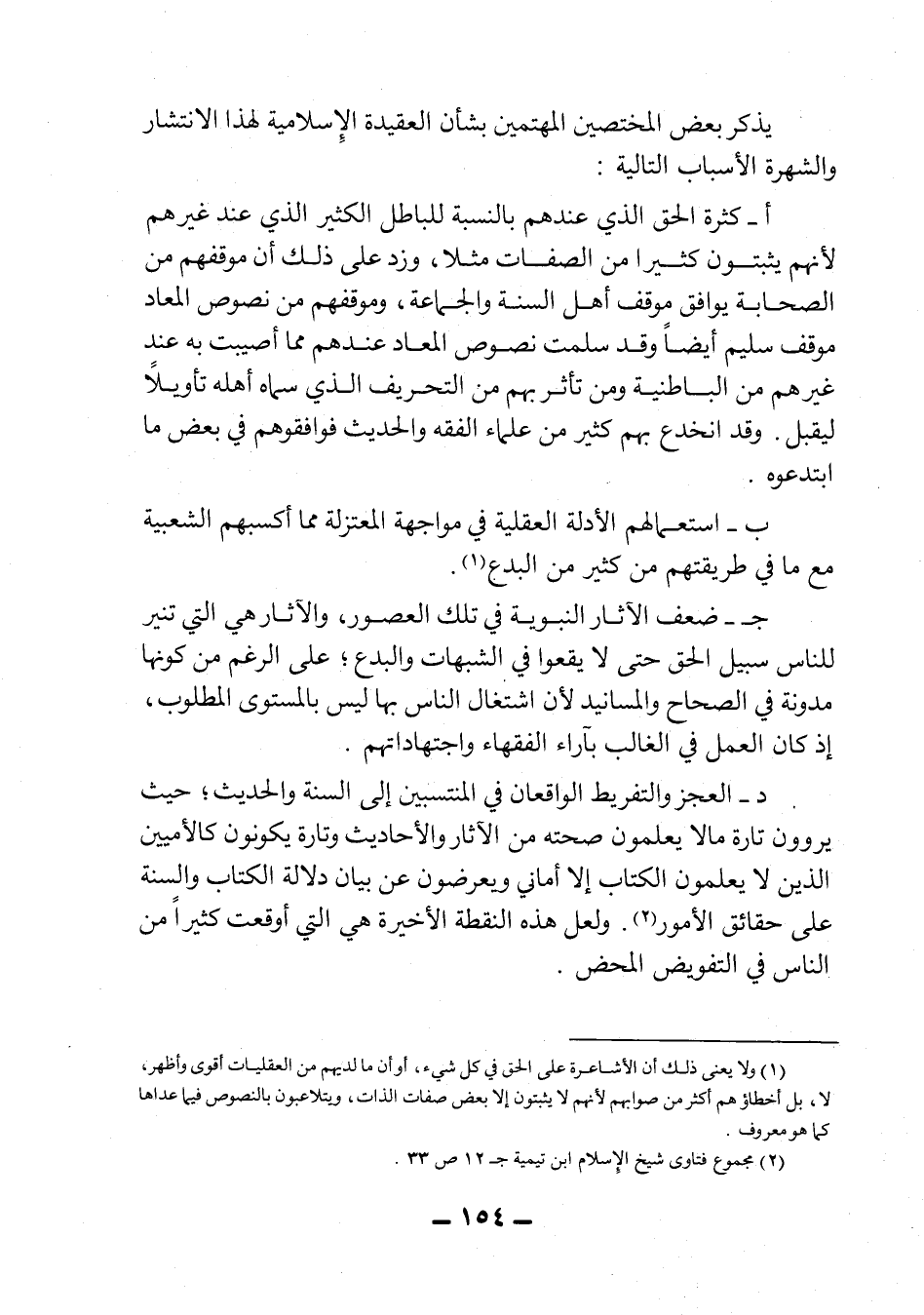 د- العجز والتفريط الواقعان في المنتسبين إلى السنة والحديث، حيث يروون تارة ما لا يعلمون صحته من الآثار والأحاديث وتارة يكونون كالأميين الذين لا يعلمون الكتاب إلا أماني، ويعرضون عن بيان دلالة الكتاب والسنة على حقائق الأمور2. ولعل هذه النقطة الأخيرة هي التي وقعت كثيراً من الناي في التفويض المحض.