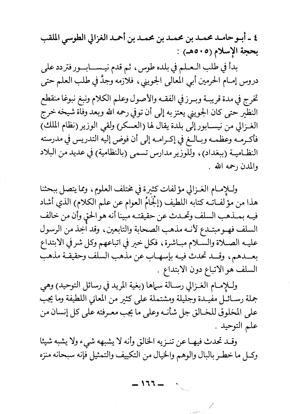 4- أبو حامد محمد بن محمد بن محمد بن أحمد الغزالي الطوسي الملقب بحجة الإسلام (505هـ) :