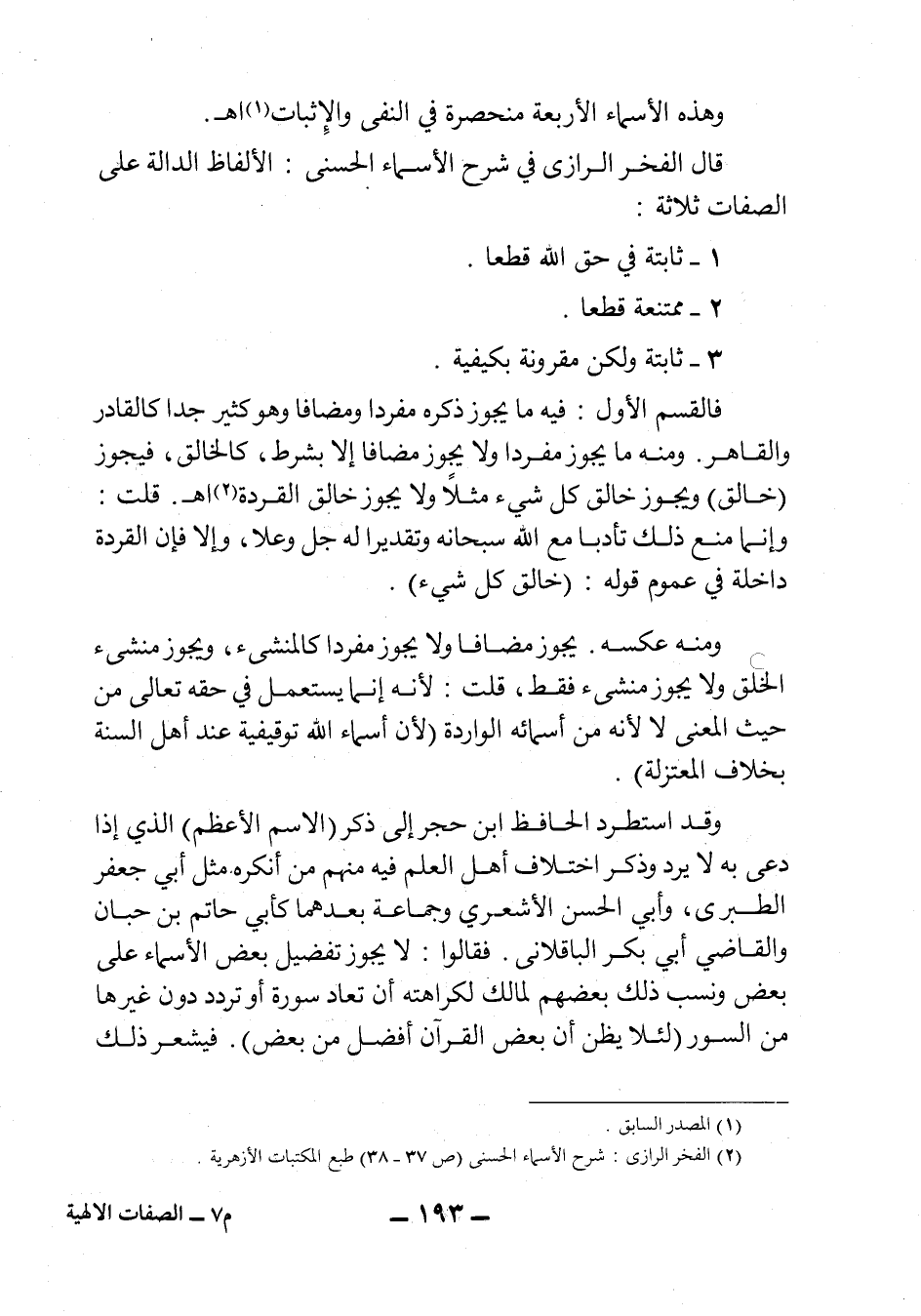 2 الفخر الرازي شرح الأسماء الحسنى ص: 37-38 طبع المكتبات الأزهرية.