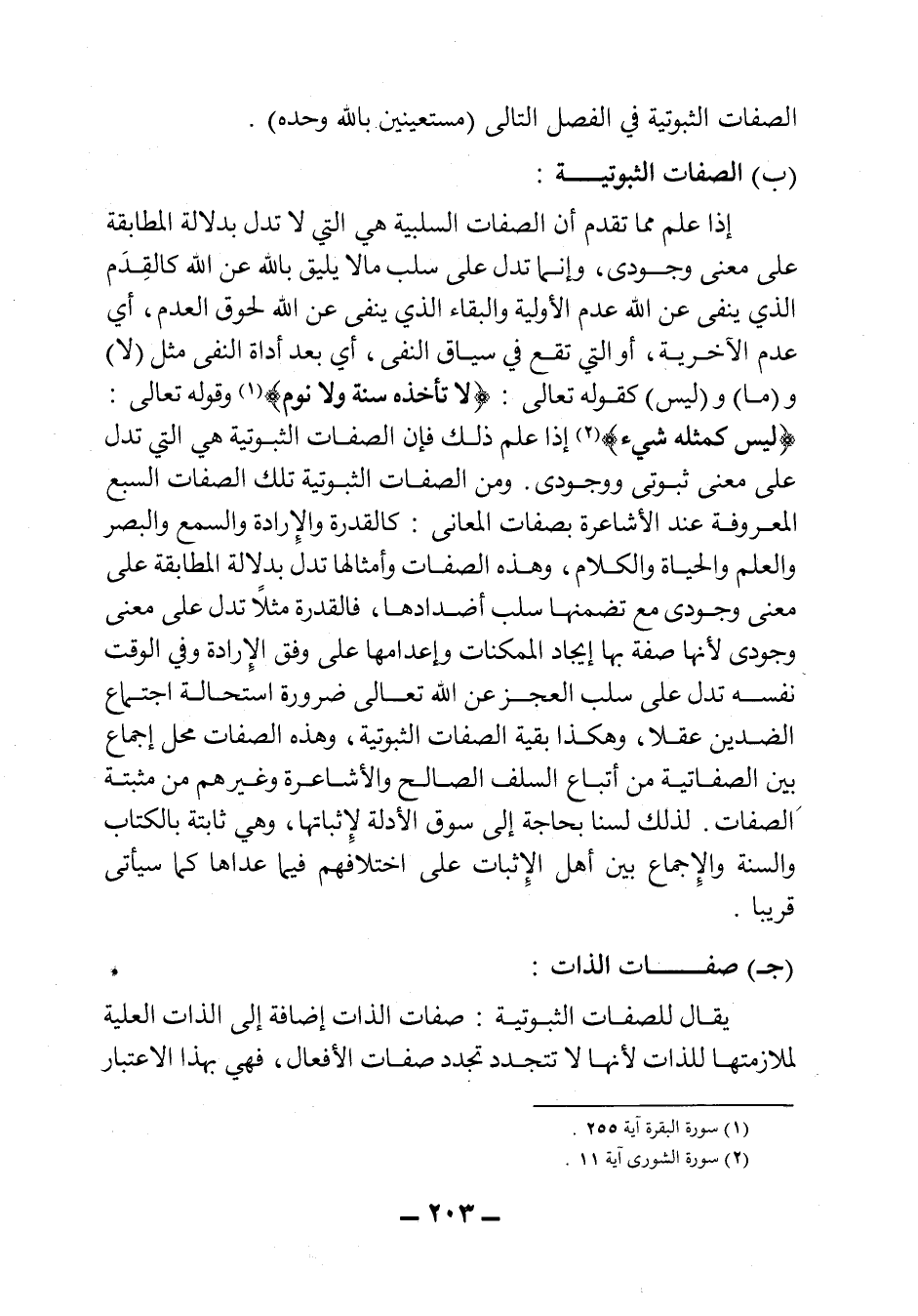 الصفات الثبوتية في الفصل التالي (مستعينين بالله وحده) .
