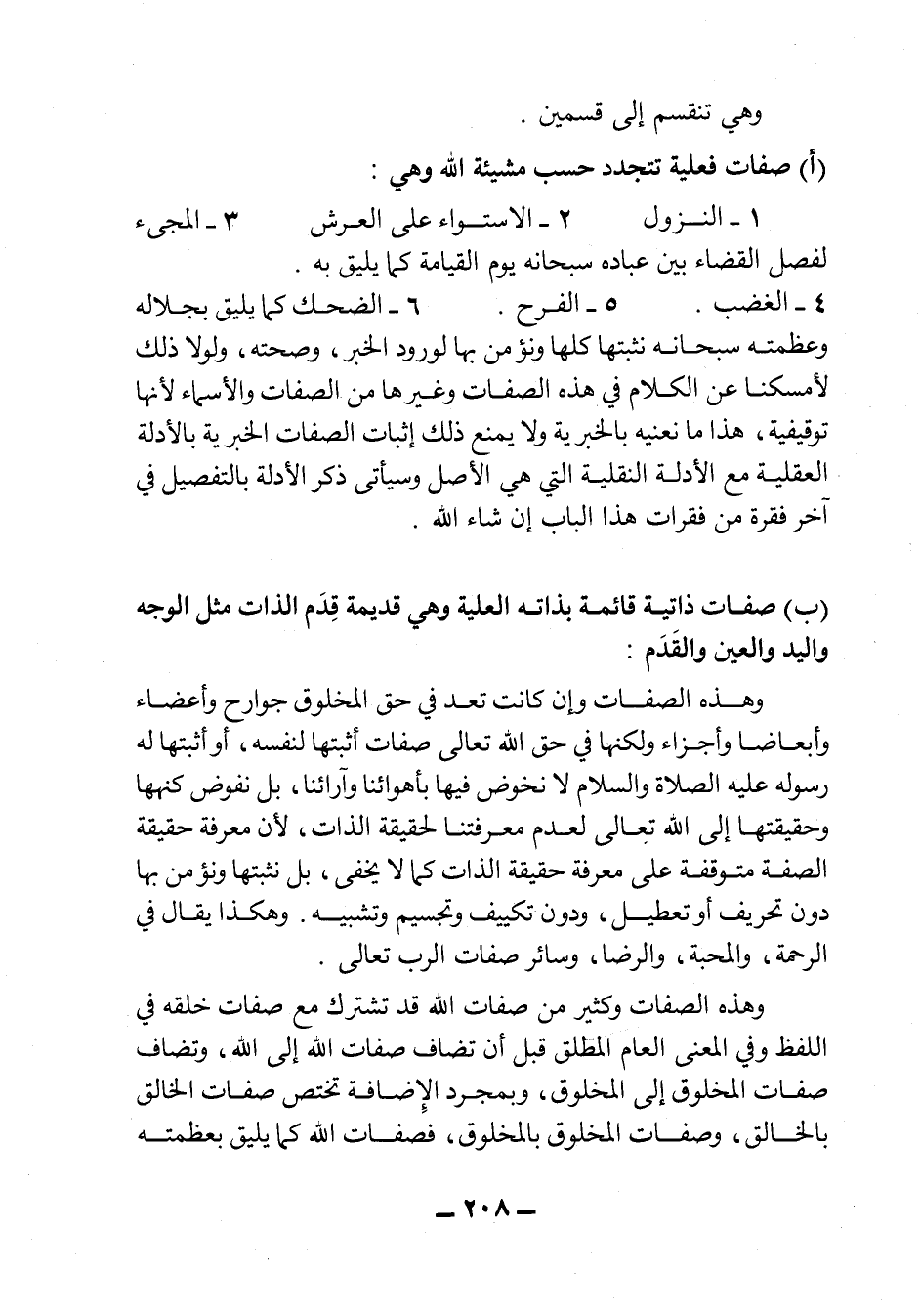 ب- صفات ذاتية قائمة بذاته العلية وهي قديمة قِدَم الذات مثل الوجه واليد والعين والقَدَم: