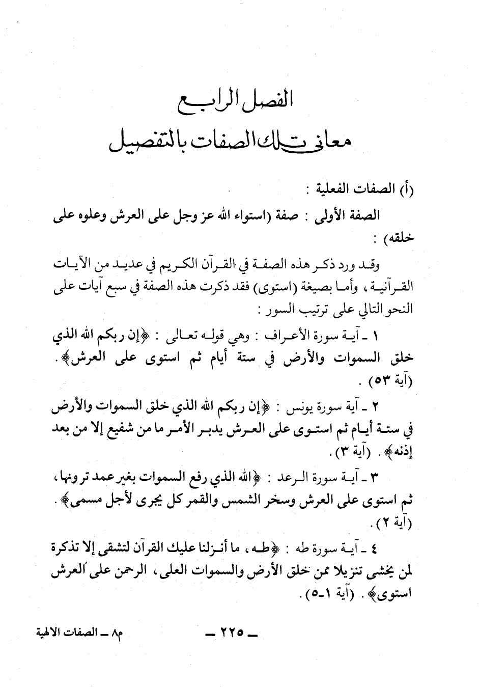 1- آية سورة الأعراف: وهي قوله تعالى: {إِنَّ رَبَّكُمُ اللهُ الَّذِي خَلَقَ السَّمَاوَاتِ وَالأَرْضَ فِي سِتَّةِ أَيَّامٍ ثُمَّ اسْتَوَى عَلَى الْعَرْشِ} (آية: 53) .