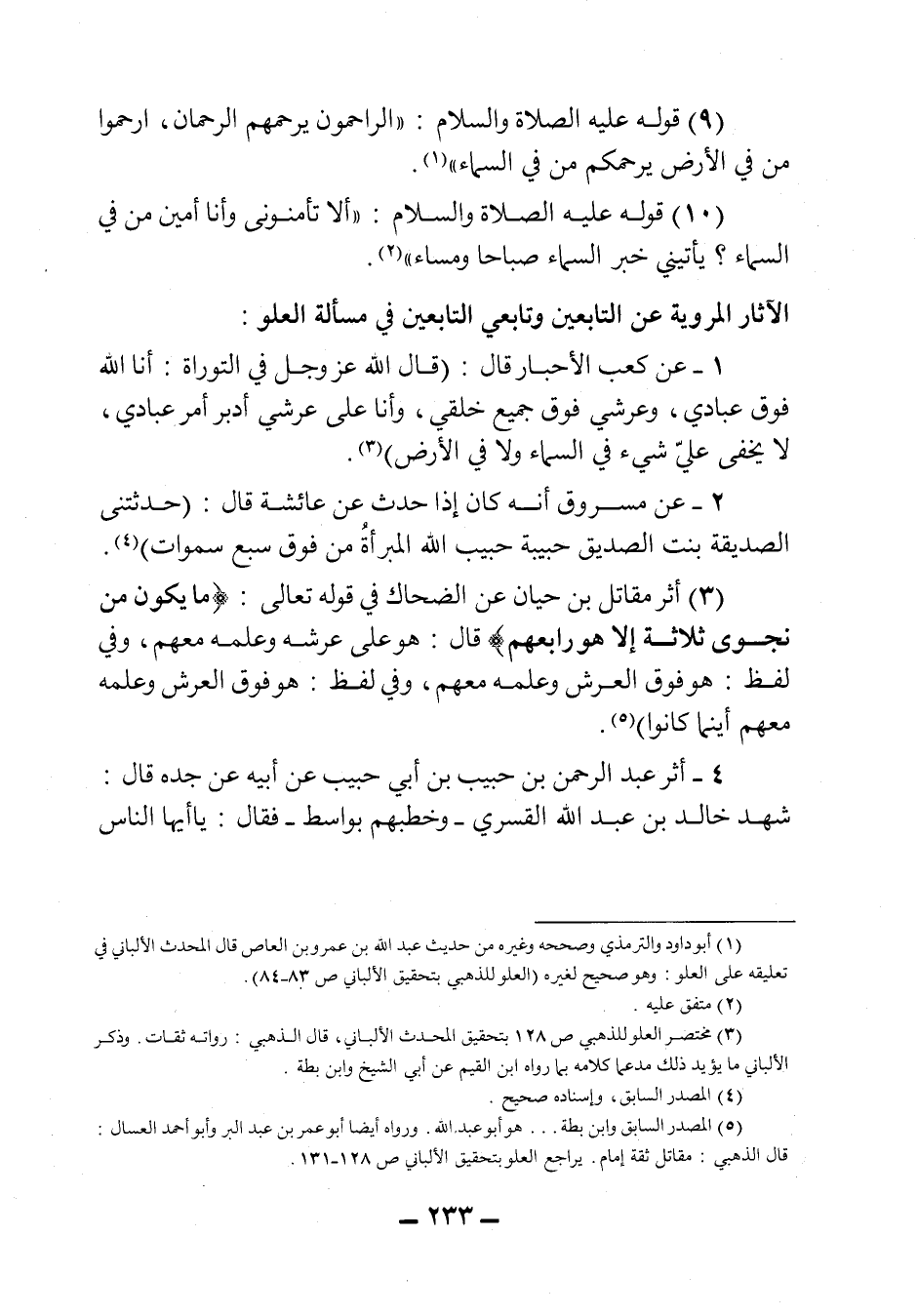الآثار المروية عن التابعين وتابعي التابعين في مسألة العلو:
