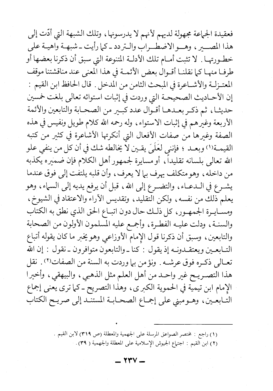 1 راجع: مختصر الصواعق المرسلة على الجهمية والمعطلة ص: 319 لابن القيم.