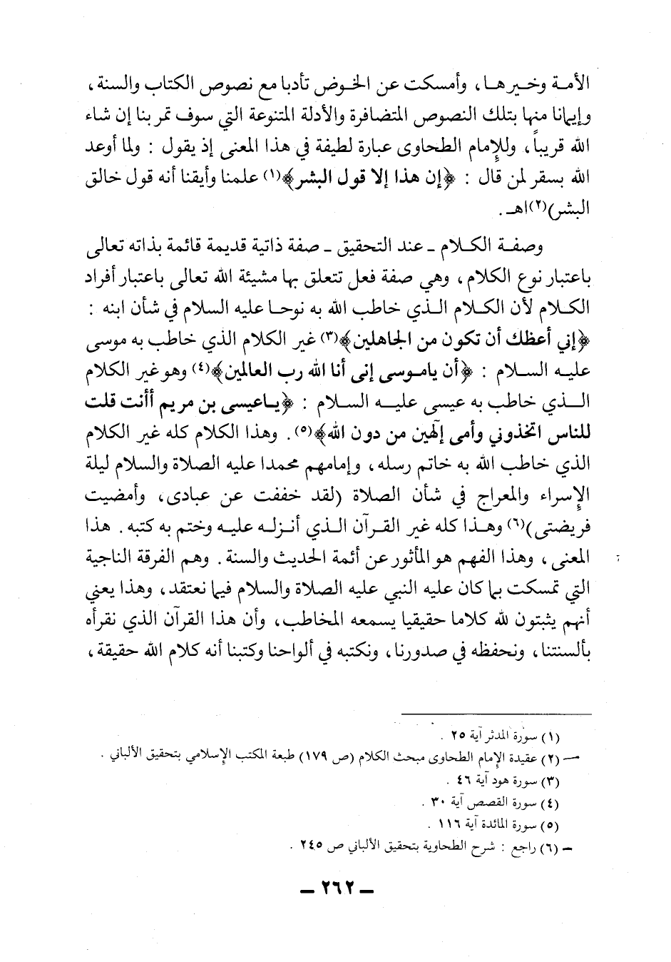 6 راجع شرح الطحاوية بتحقيق الألباني ص: 245.