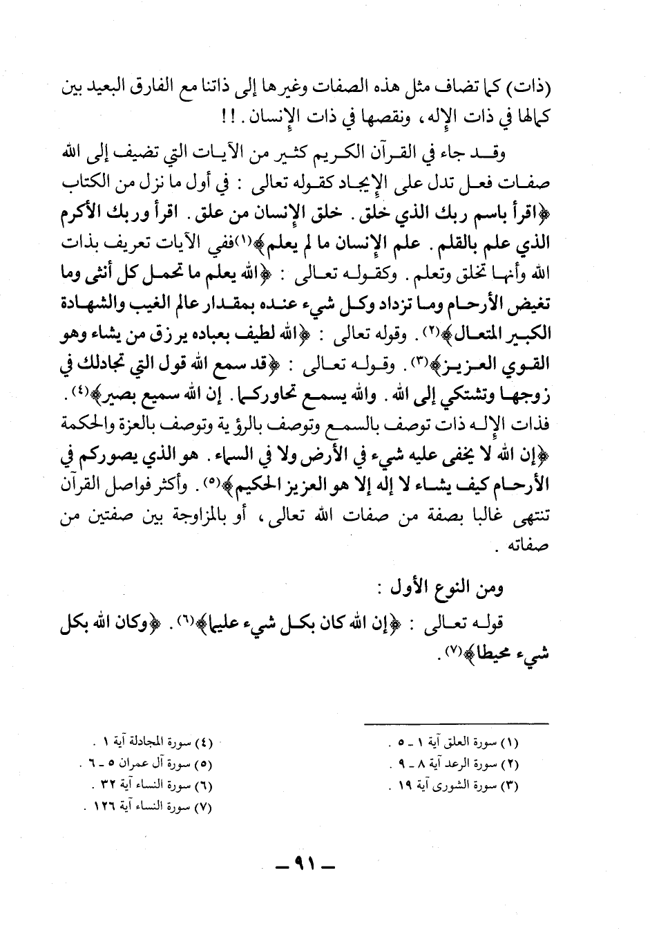 قوله تعالى: {إِنَّ اللَّهَ كَانَ بِكُلِّ شَيْءٍ عَلِيمًا} 6، {وَكَانَ اللهُ بِكُلِّ شَيْءٍ مُّحِيطًا} 7.
