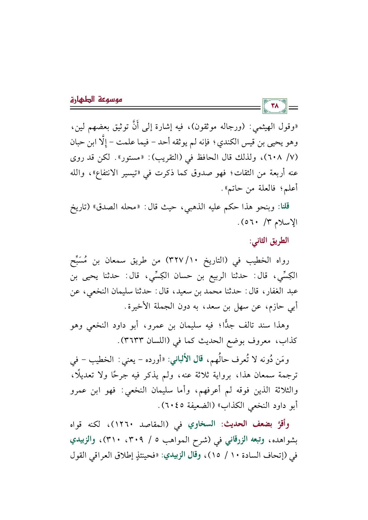 وأقرَّ بضعف الحديث: السخاوي في (المقاصد ١٢٦٠)، لكنه قواه بشواهده، وتبعه الزرقاني في (شرح المواهب ٥/ ٣٠٩، ٣١٠)، والزبيدي في (إتحاف السادة ١٠/ ١٥)، وقال الزبيدي: «فحينئذٍ إطلاق العراقي القول