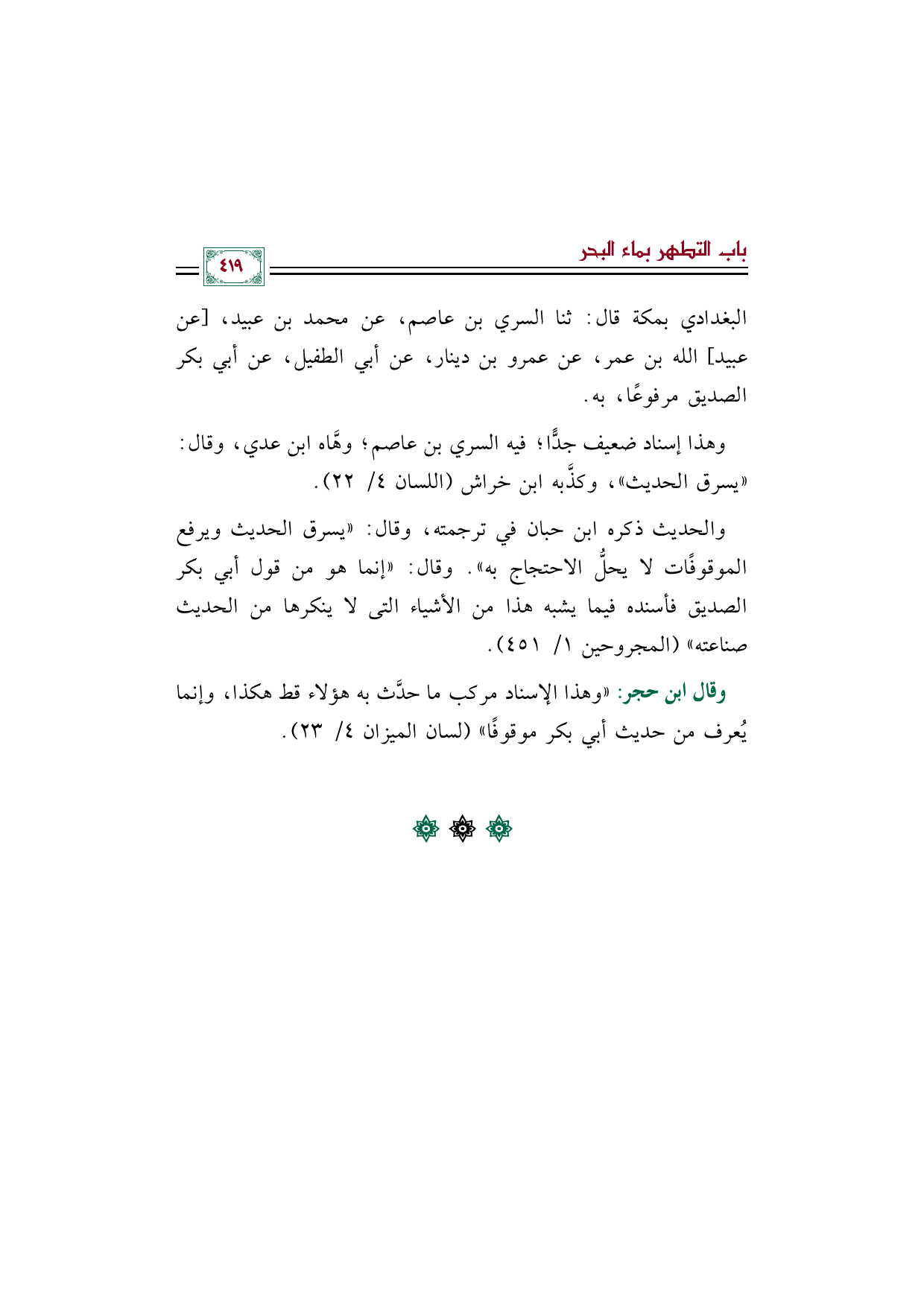 البغدادي بمكة قال: ثنا السري بن عاصم، عن محمد بن عبيد، [عن عبيد] الله بن عمر، عن عمرو بن دينار، عن أبي الطفيل، عن أبي بكر الصديق مرفوعًا، به.
