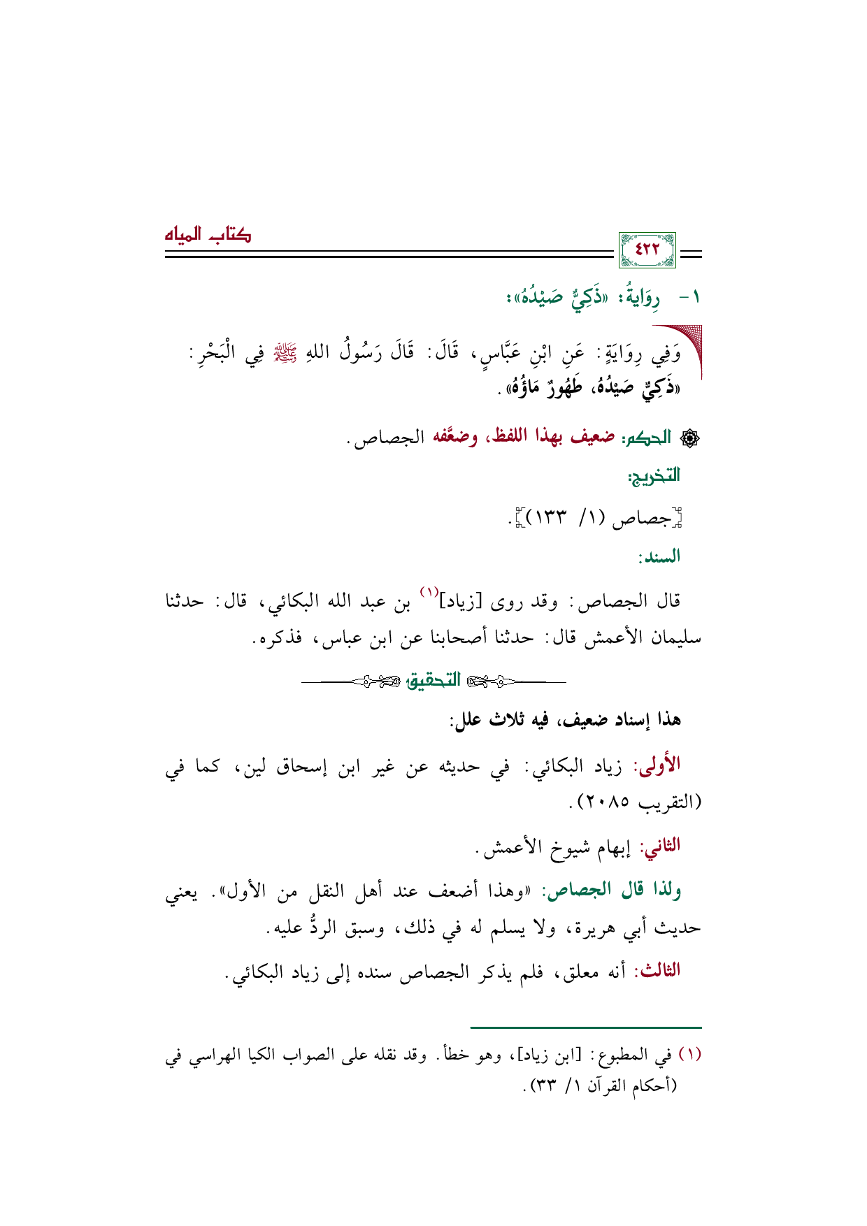 الثالث: أنه معلق، فلم يذكر الجصاص سنده إلى زياد البكائي.