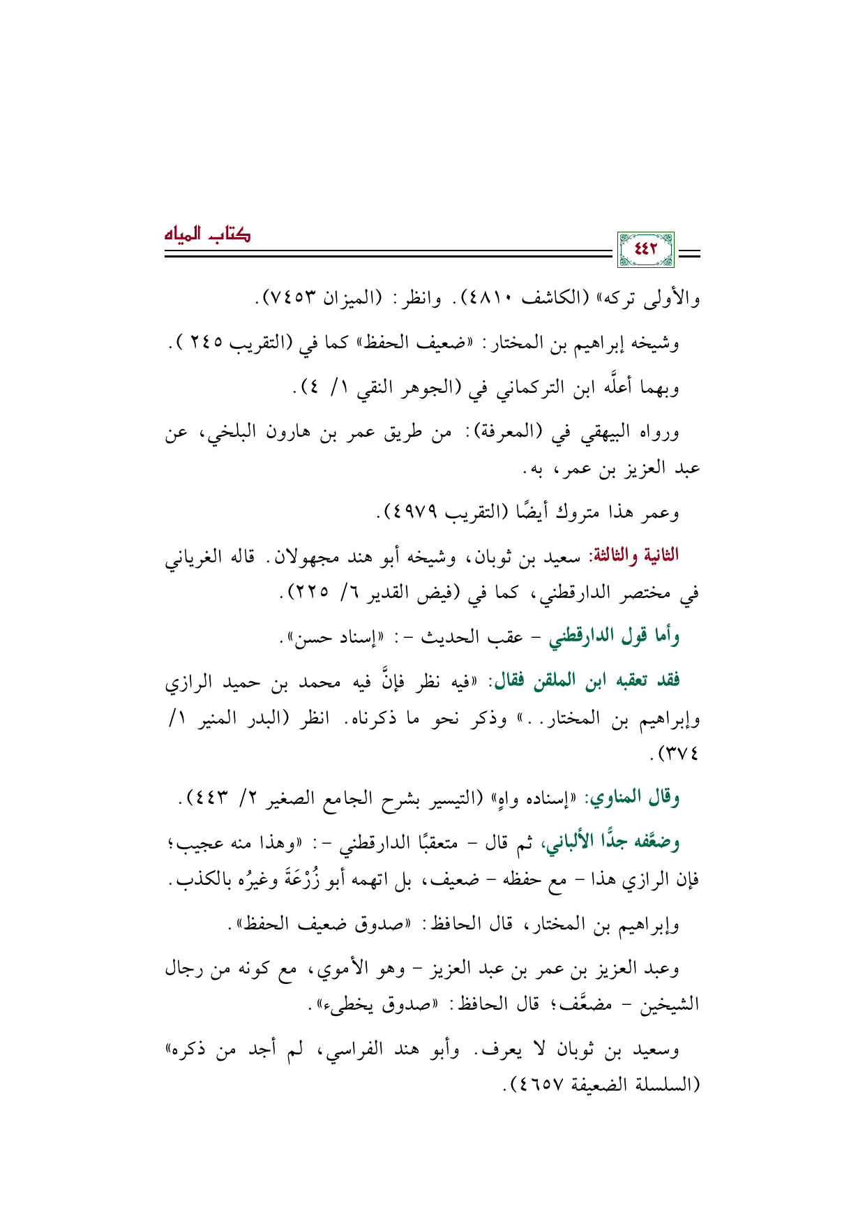 فقد تعقبه ابن الملقن فقال: ((فيه نظر فإنَّ فيه محمد بن حميد الرازي وإبراهيم بن المختار .. )) وذكر نحو ما ذكرناه. انظر (البدر المنير ١/ ٣٧٤).