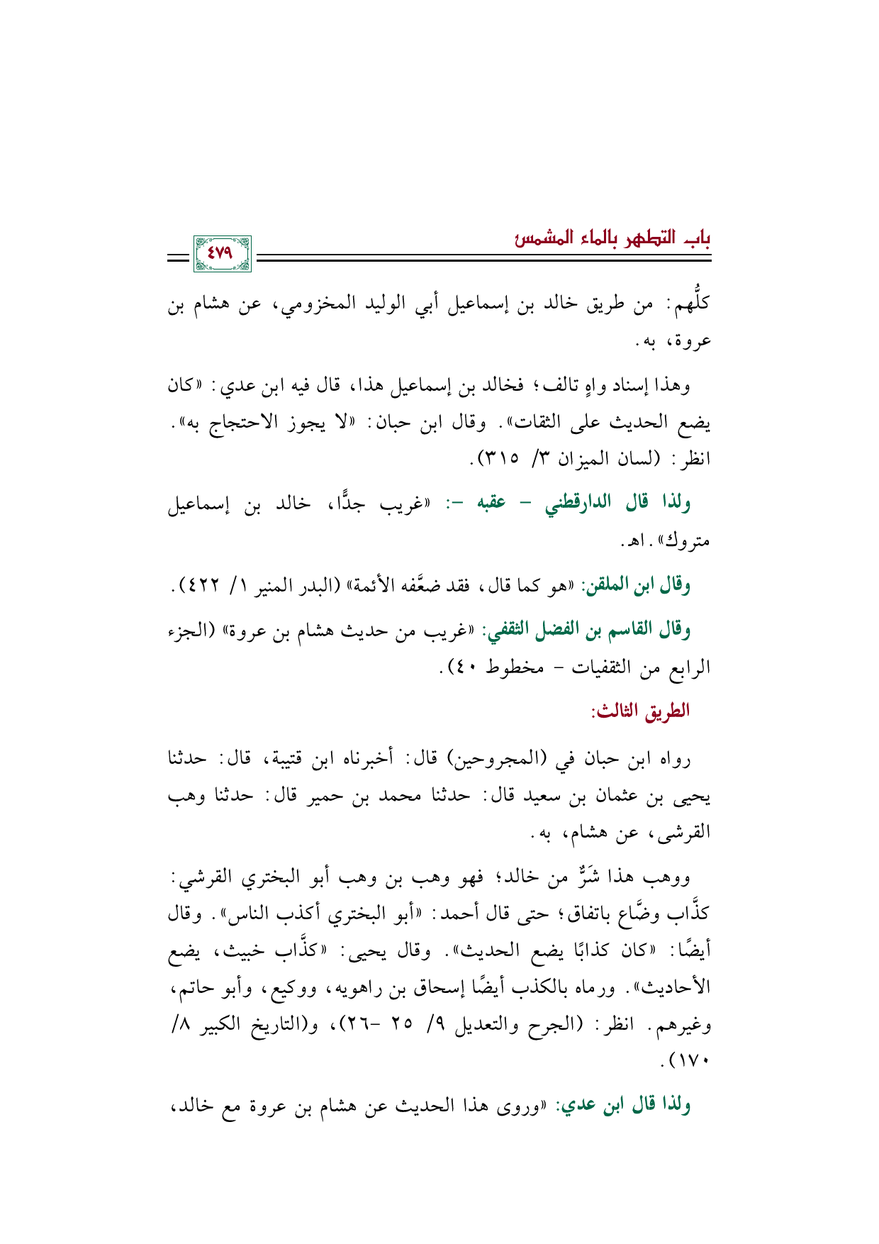 ولذا قال ابن عدي: ((وروى هذا الحديث عن هشام بن عروة مع خالد،