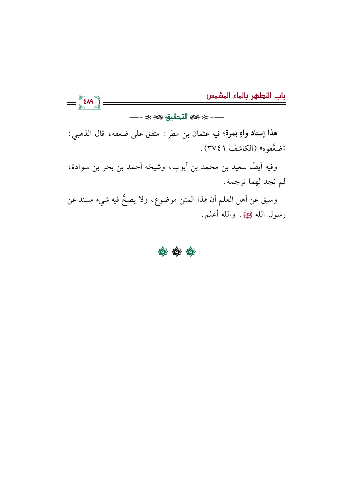 وسبق عن أهل العلم أن هذا المتن موضوع، ولا يصحُّ فيه شيء مسند عن رسول الله صلى الله عليه وسلم. والله أعلم.