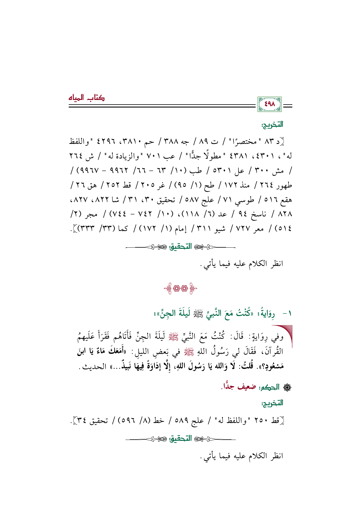 رِوَايةُ: كُنْتُ مَعَ النَّبيِّ صلى الله عليه وسلم لَيلَةَ الجِنِّ