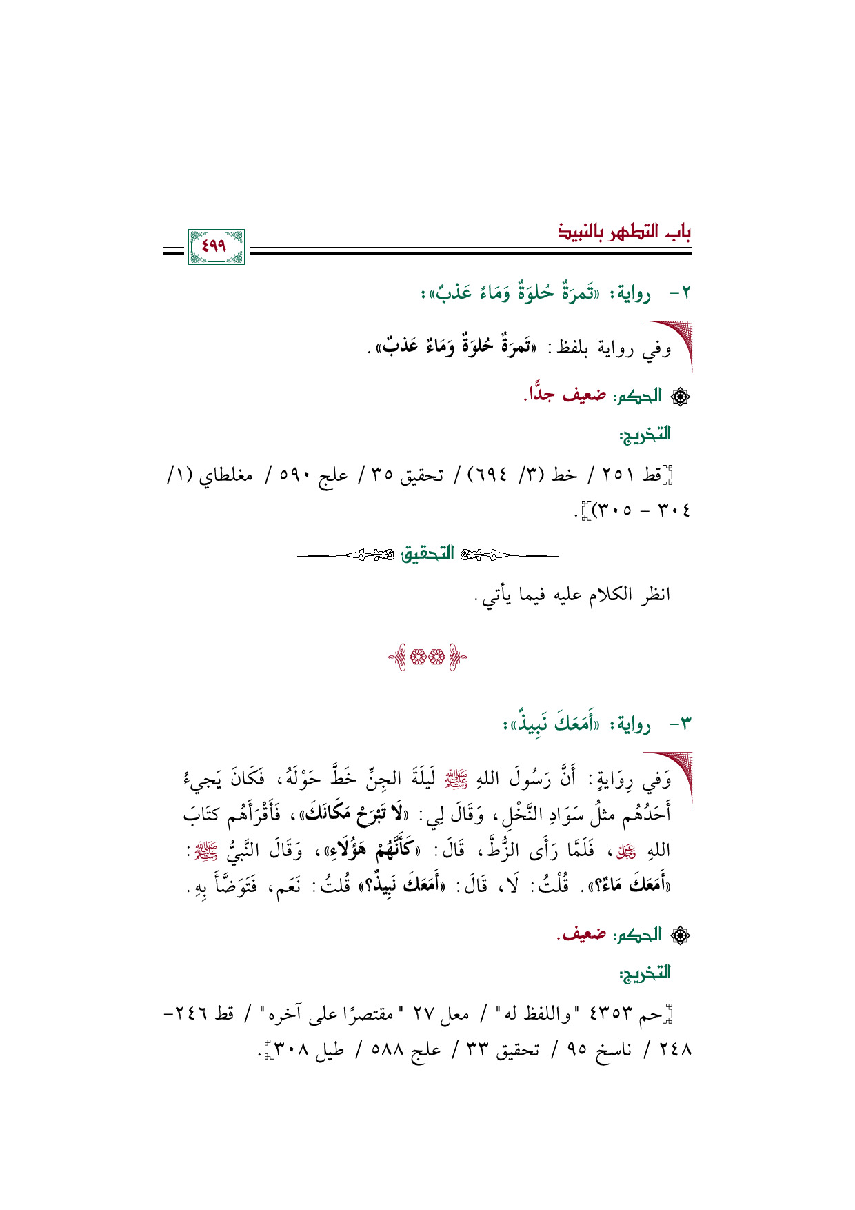 [قط ٢٥١/ خط (٣/ ٦٩٤) / تحقيق ٣٥/ علج ٥٩٠/ مغلطاي (١/ ٣٠٤ - ٣٠٥)].