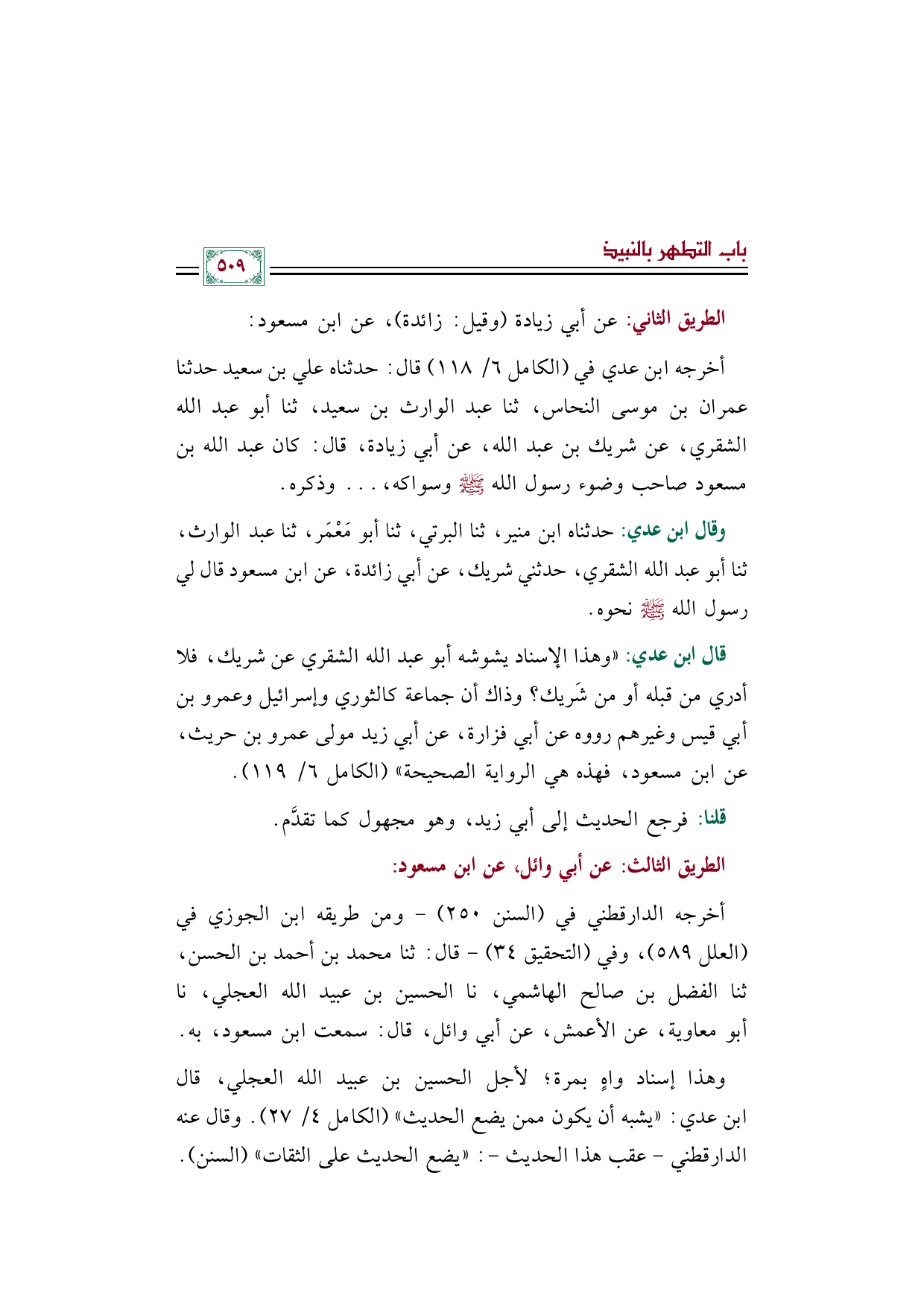 قال ابن عدي: ((وهذا الإسناد يشوشه أبو عبد الله الشقري عن شريك، فلا أدري من قبله أو من شَريك؟ وذاك أن جماعة كالثوري وإسرائيل وعمرو بن أبي قيس وغيرهم رووه عن أبي فزارة، عن أبي زيد مولى عمرو بن حريث، عن ابن مسعود، فهذه هي الرواية الصحيحة)) (الكامل ٦/ ١١٩).