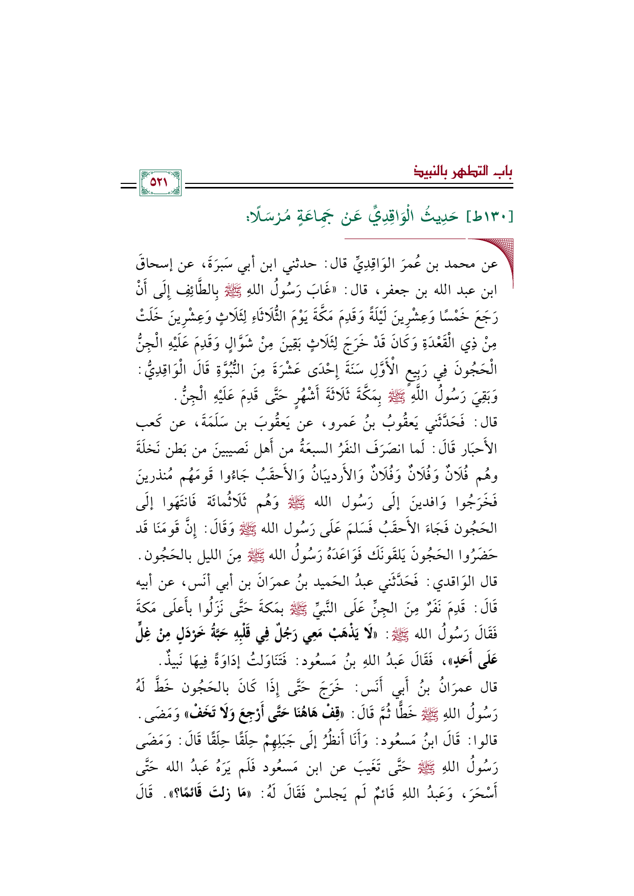 ١٣٠ - حَدِيثُ الْوَاقِدِيِّ عَنْ جَمِاعَةٍ مُرْسَلًا: