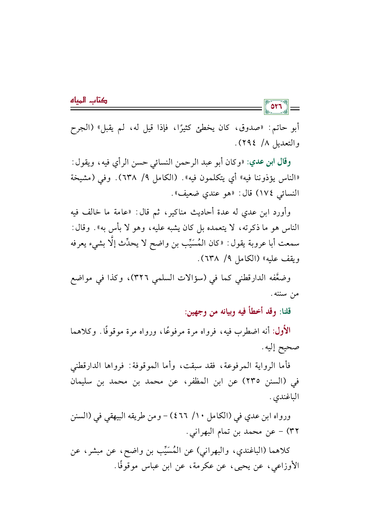 كلاهما (الباغندي، والبهراني) عن المُسَيِّب بن واضح، عن مبشر، عن الأوزاعي، عن يحيى، عن عكرمة، عن ابن عباس موقوفًا.