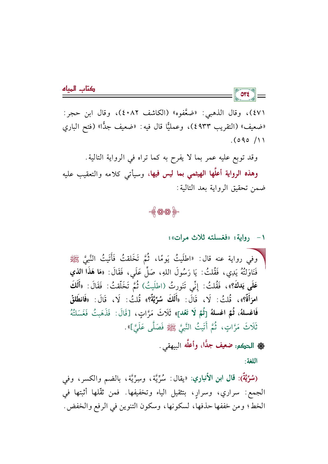 ٤٧١)، وقال الذهبي: ((ضعَّفوه)) (الكاشف ٤٠٨٢)، وقال ابن حجر: ((ضعيف)) (التقريب ٤٩٣٣)، وعمليًّا قال فيه: ((ضعيف جدًّا)) (فتح الباري ١١/ ٥٩٥).