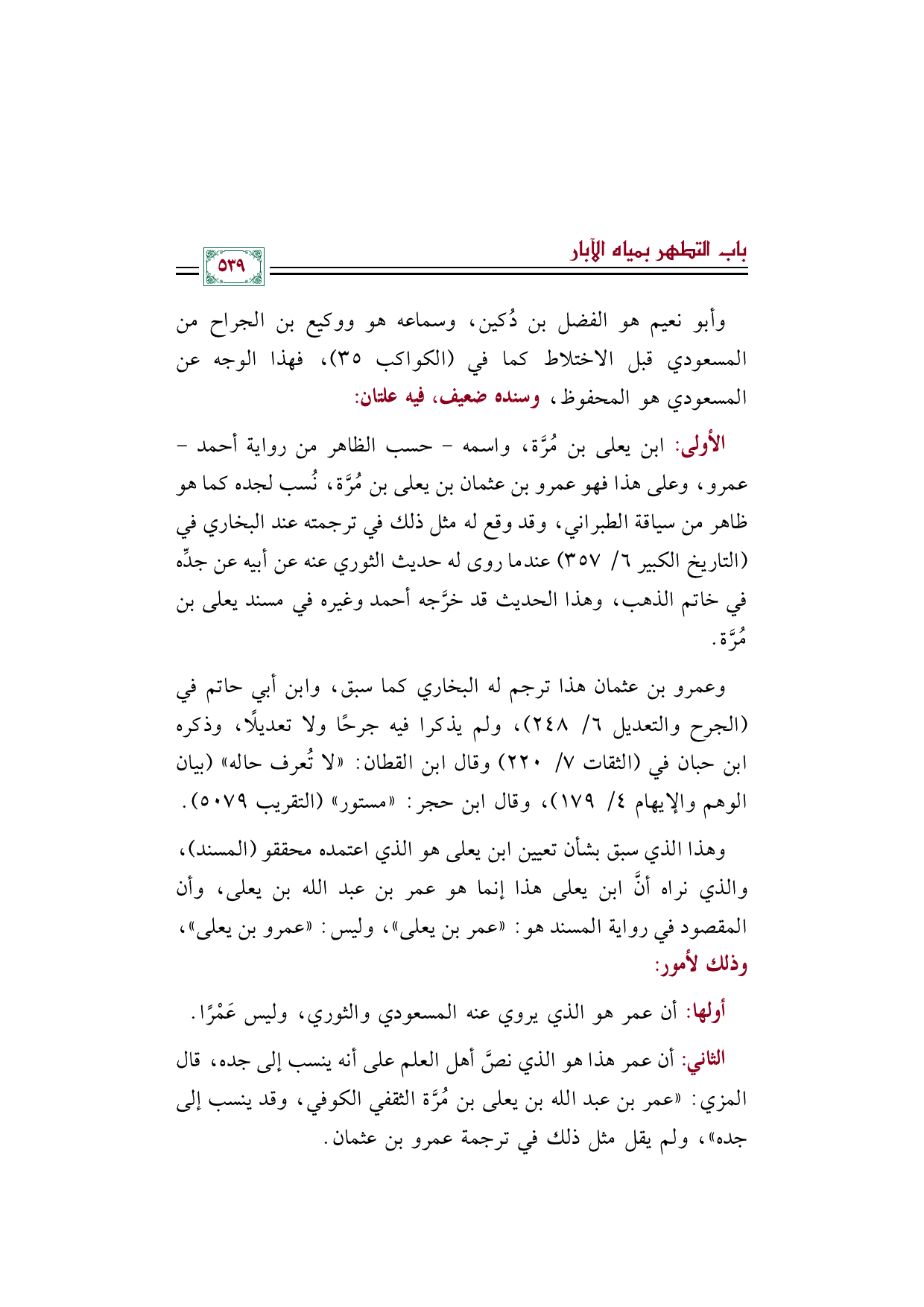 أولها: أن عمر هو الذي يروي عنه المسعودي والثوري، وليس عَمْرًا.