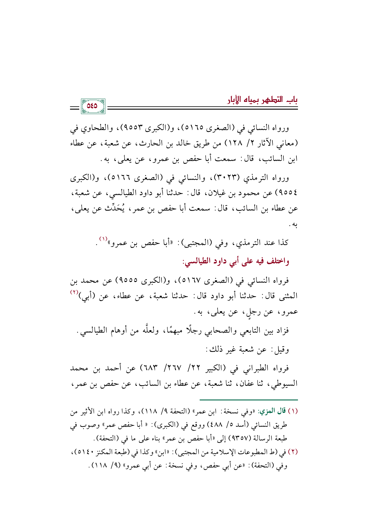 (¬٢) في (ط المطبوعات الإسلامية من المجتبى): ((ابن)) وكذا في (طبعة المكنز ٥١٤٠)، وفي التحفة: ((عن أبي حفص، وفي نسخة: عن أبي عمرو)) (٩/ ١١٨).