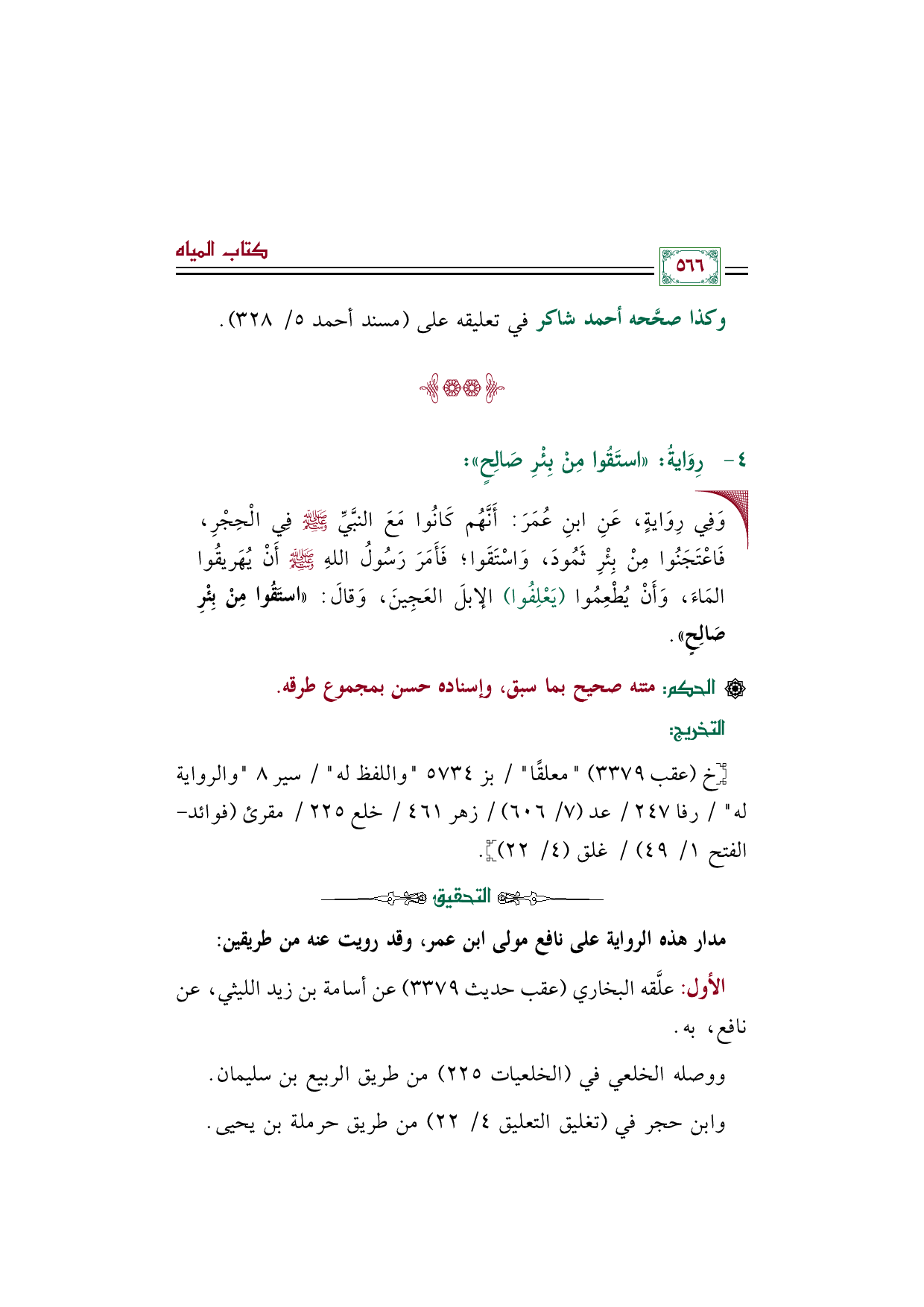 الأول: علَّقه البخاري (عقب حديث ٣٣٧٩) عن أسامة بن زيد الليثي، عن نافع، به.