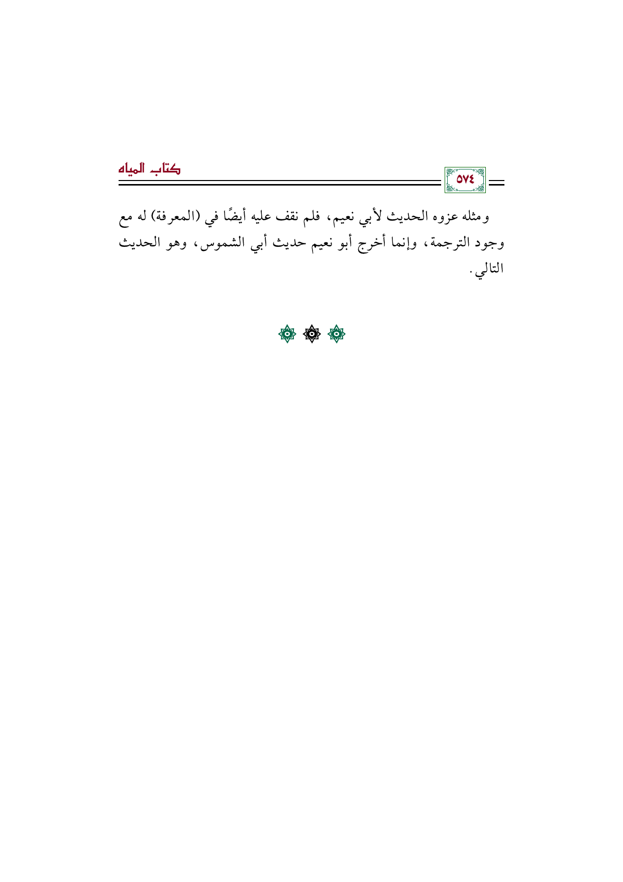 ومثله عزوه الحديث لأبي نعيم، فلم نقف عليه أيضًا في ((المعرفة له)) مع وجود الترجمة، وإنما أخرج أبو نعيم حديث أبي الشموس، وهو الحديث التالي.