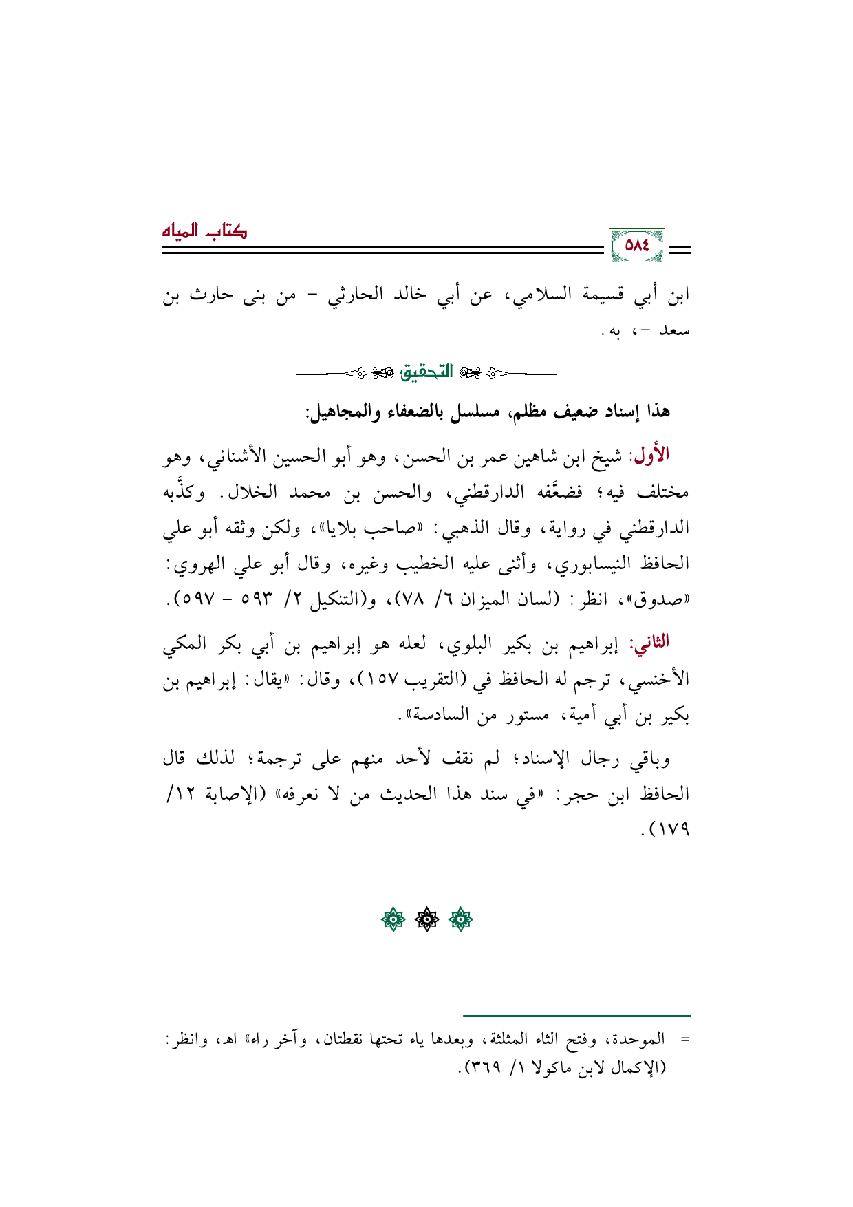 ابن أبي قسيمة السلامي، عن أبي خالد الحارثي - من بنى حارث بن سعد-، به.