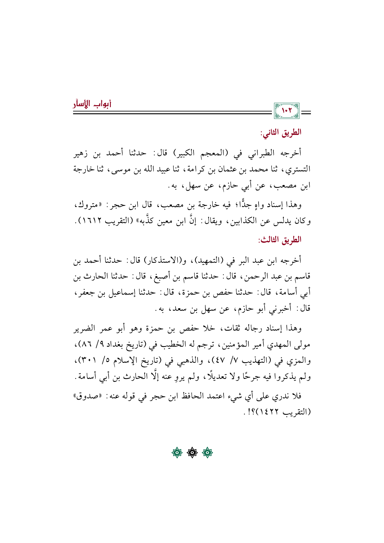 وهذا إسناد رجاله ثقات، خلا حفص بن حمزة وهو أبو عمر الضرير مولى المهدي أمير المؤمنين، ترجم له الخطيب في (تاريخ بغداد ٩/ ٨٦)، والمزي في (التهذيب ٧/ ٤٧)، والذهبي في (تاريخ الإسلام ٥/ ٣٠١)، ولم يذكروا فيه جرحًا ولا تعديلًا، ولم يروِ عنه إلَّا الحارث بن أبي أسامة.