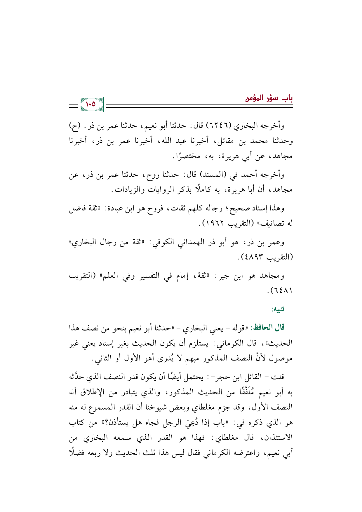 ومجاهد هو ابن جبر: ((ثقة، إمام في التفسير وفي العلم)) (التقريب ٦٤٨١).