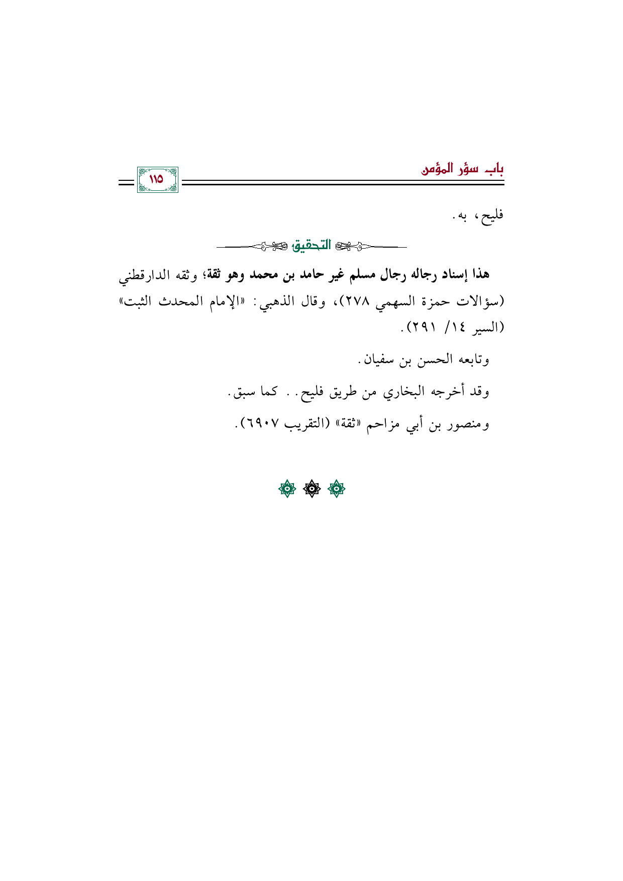 وقد أخرجه البخاري من طريق فليح .. كما سبق.